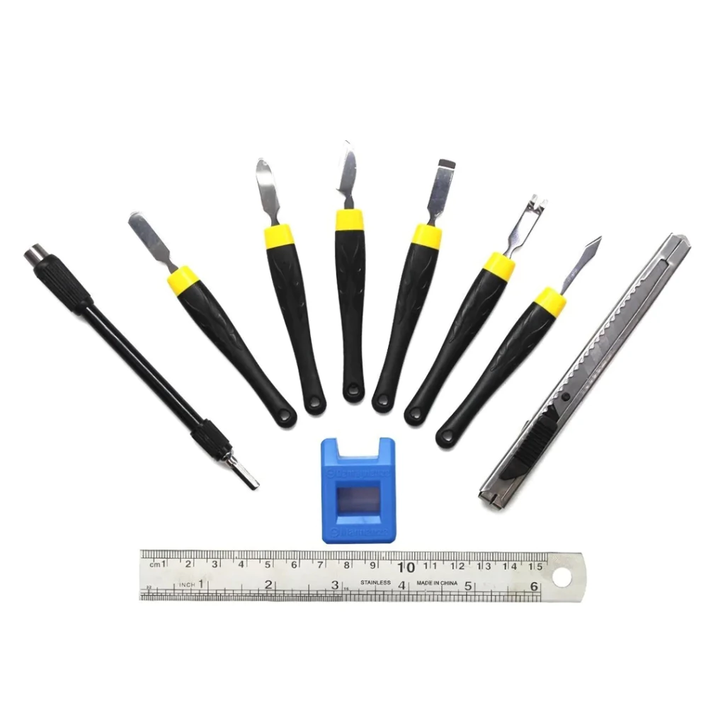 Espátulas (Pry Tools): Generalmente 2 o 3 espátulas de plástico de diferentes formas para palanquear y separar carcasas sin dañarlas.